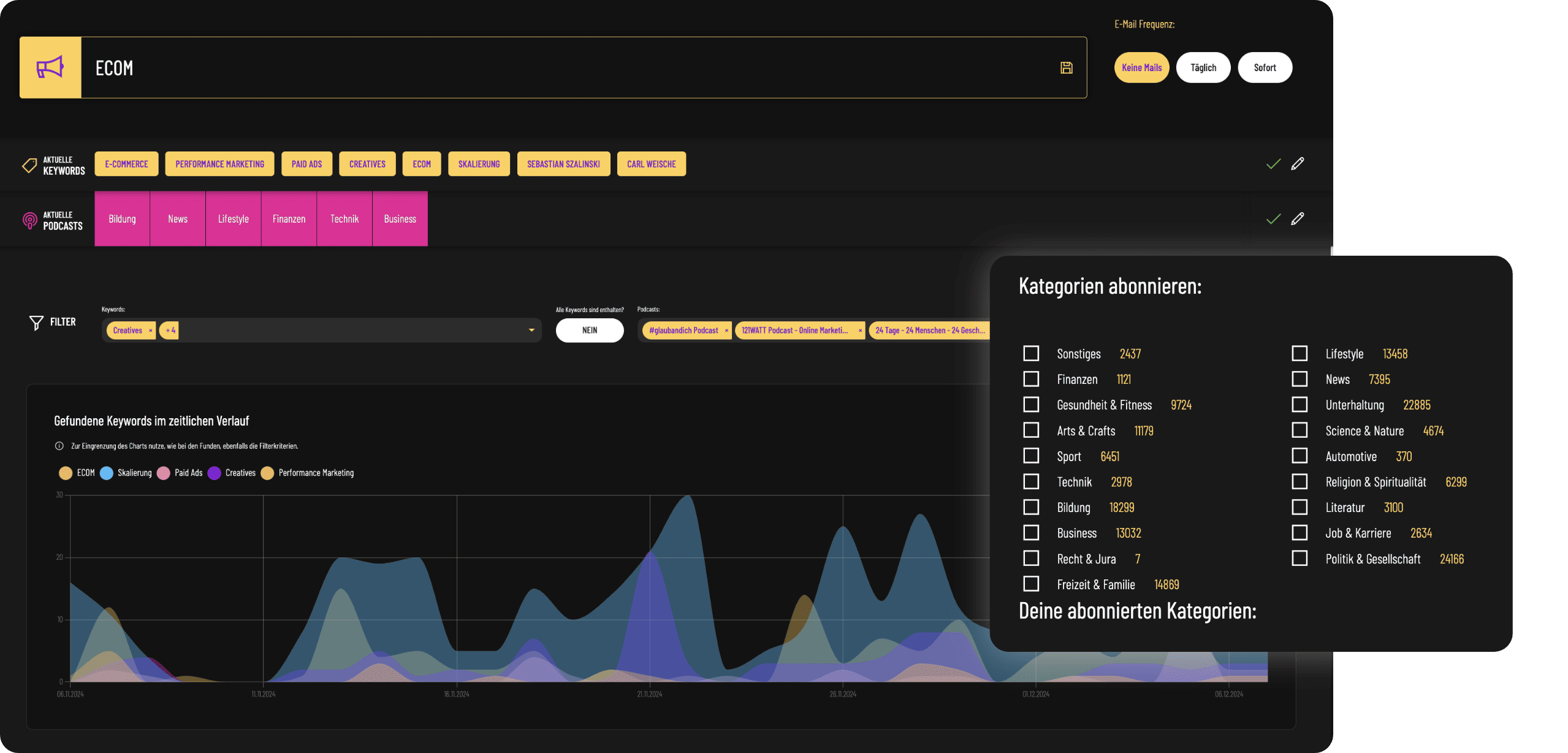 • Unsere Podcast-Discovery findet die besten Kooperationen & Werbenischen