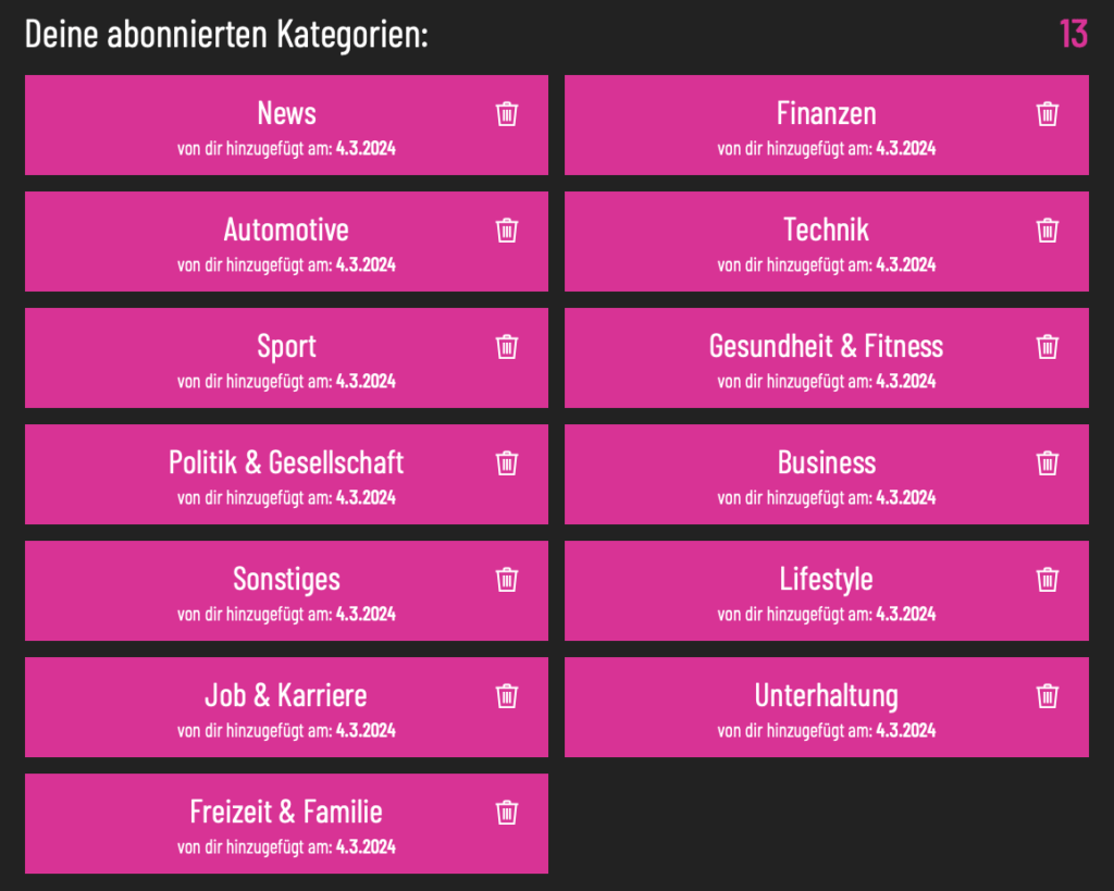 Abonnierte Schlagwörter und Podcast-Kategorien: