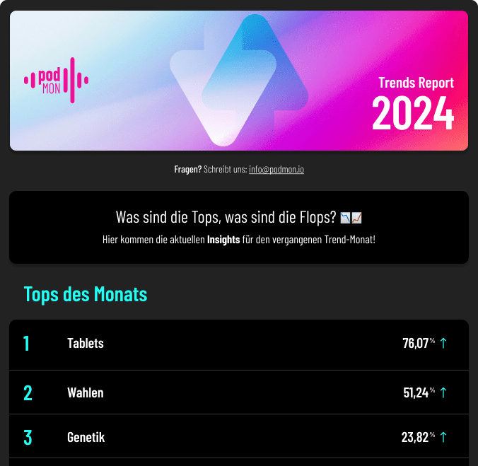Der PodMon Trends Newsletter rankt für euch die heißesten Themen